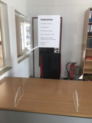 Viele Viren verbreiten sich vor allem per Tröpfcheninfektion, desewegen ist Abstand zu halten auch das Gebot der Stunde. Doch was ist mit Orten, an denen Abstand nicht überall und immer möglich ist? Das Risiko für eine Übertragung durch Tröpfcheninfektion kann auch durch eine Acrylgas-Trennscheibe, welche als Husten- und Niesschutz fungiert, reduziert werden.